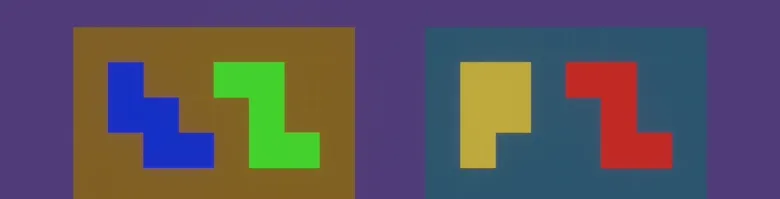 A simple, yet difficult puzzle game. Manipulate two pairs of pentominoes to form combined shapes with the same outline. There are 513 different solutions.