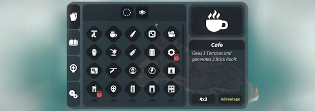 Over +50 buildings of 7 building types inspired from card games to unlock and combine.