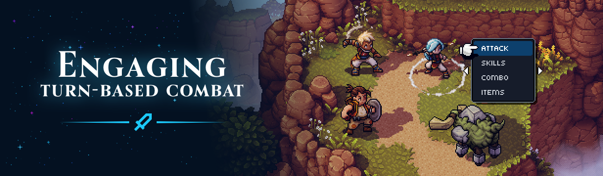 Sea of Stars is a turn-based RPG inspired by the classics. It tells the story of two Children of the Solstice who will combine the powers of the sun and moon to perform Eclipse Magic, the only force capable of fending off the monstrous creations of the evil alchemist known as The Fleshmancer.