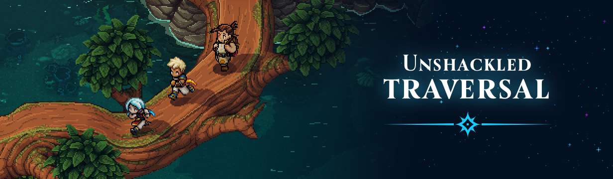 Swim, climb, vault, jump off or hoist up ledges as you traverse seamlessly through the world with a navigation system based on platformer expertise that breaks free from the classic bound-to-the-grid tileset movement.