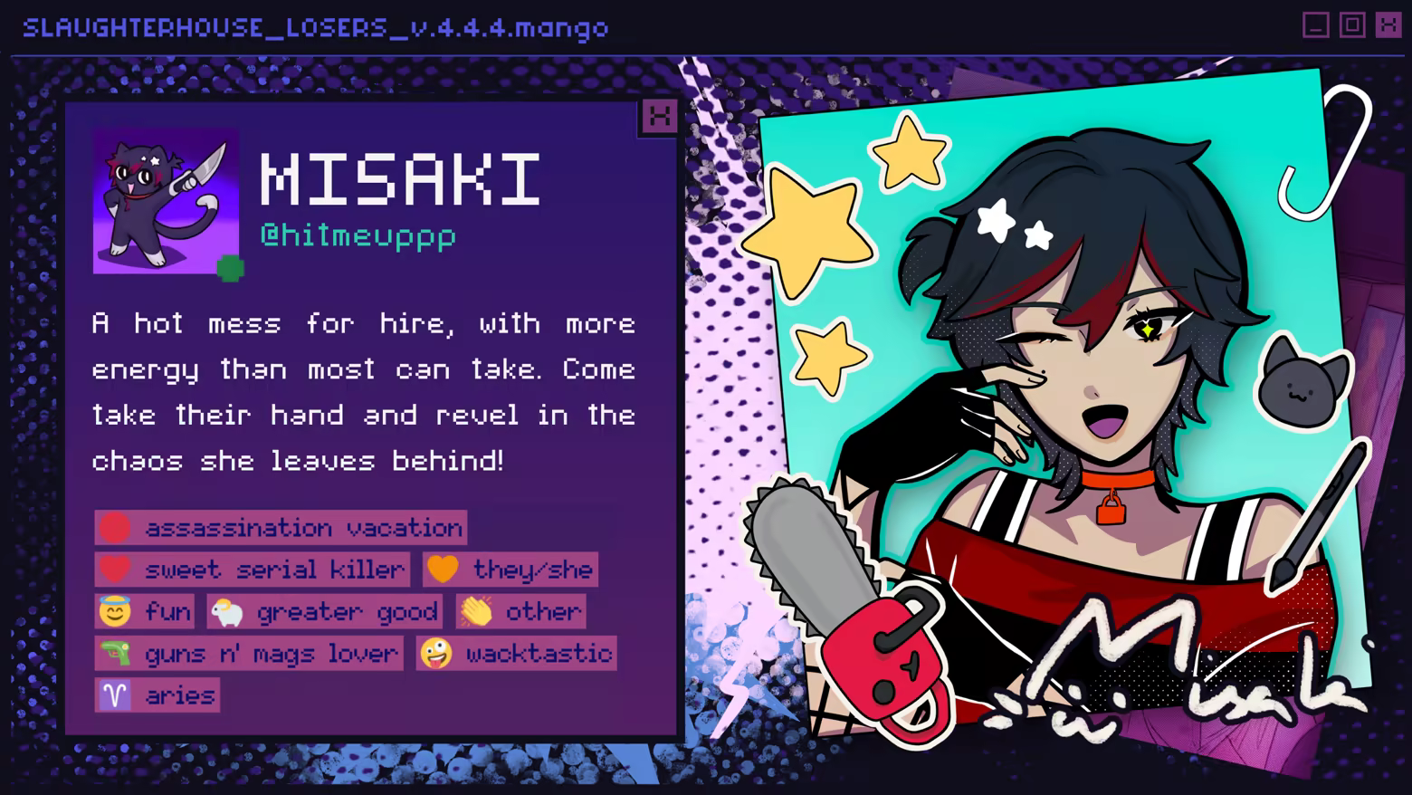 Yup, you heard us right! Killer Chat! is a dark satire romance chatsim where you date serial killers. Pretend to be a serial killer, get inspiration for your book, fall in love, and try not to call the cops through a whirlwind six months with your murderous beau of choice. Who knows? You might find your happily ever after... or headline the news as a gruesomely lovesick corpse. It's honestly up to you.