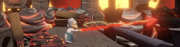 Our heroine isn't just any old lady. With her $*&% character, she seizes diabolical power. Her new trump card? An infernal grappling hook to navigate through flames and the abyss!