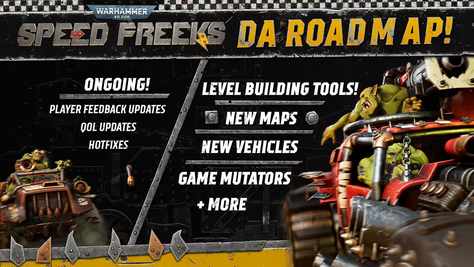 Adrenaline-fueled combat racing in the brutal Warhammer 40,000 universe! Play online or with bots, driving Ork vehicles equipped with powerful weapons and abilities into a full-throttle battle to the death. Speed Freeks is a fresh, Ork-y take on vehicle combat that you’ve never seen before. WAAAGH!