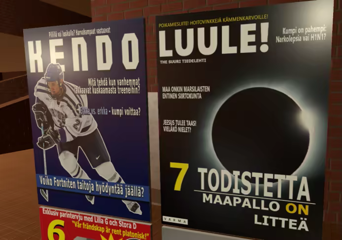 What little remnants of the outside world exists on the barracks are modeled after actual Finnish popular culture, tongue firmly in cheek. Outside events do, however, have an effect on your service, and the game has several storylines that may take several playthroughts to fully uncover.