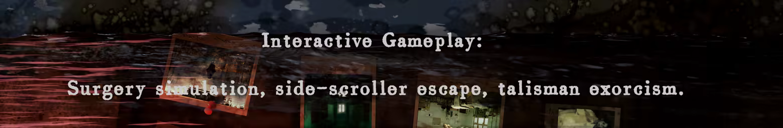 Diverse interactions aid in expressing and understanding the story. Includes a realistic surgery simulator, talisman exorcism based on the Five Elements theory, and side-scrolling exploration/escape—moderate difficulty, easy to learn, fully immersive.